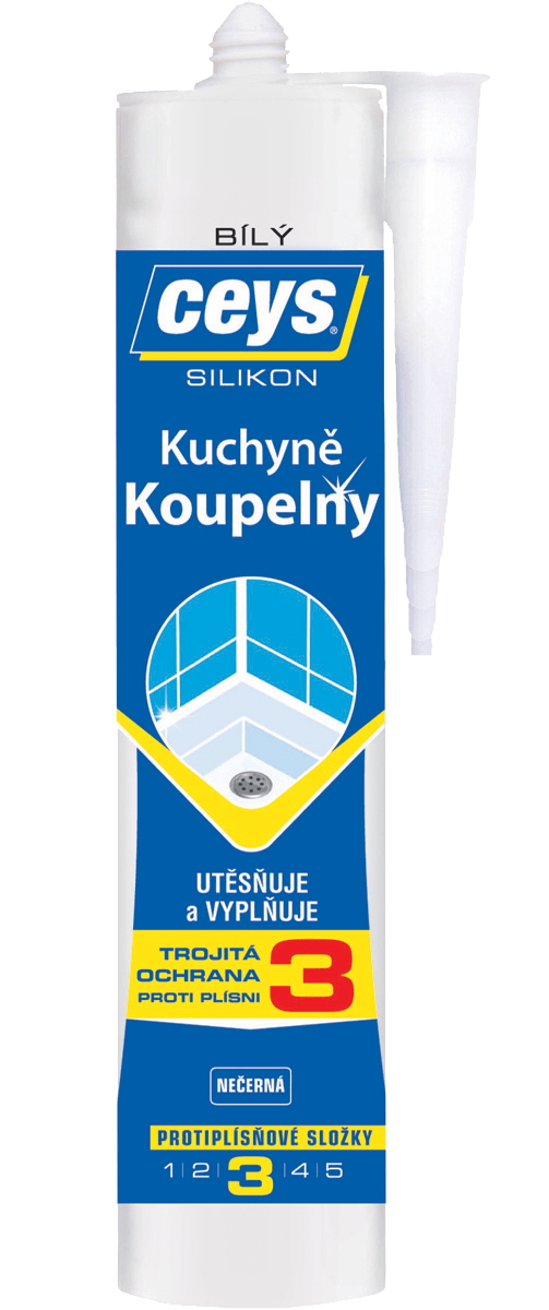 Trojitá ochrana proti plísni: Technologie trojité ochrany je vysoce účinný fungicid určený k trojnásobné ochraně silikonového těsnění, působí proti řasám, houbám a bakteriím a brání tak růstu plísní v silikonu.