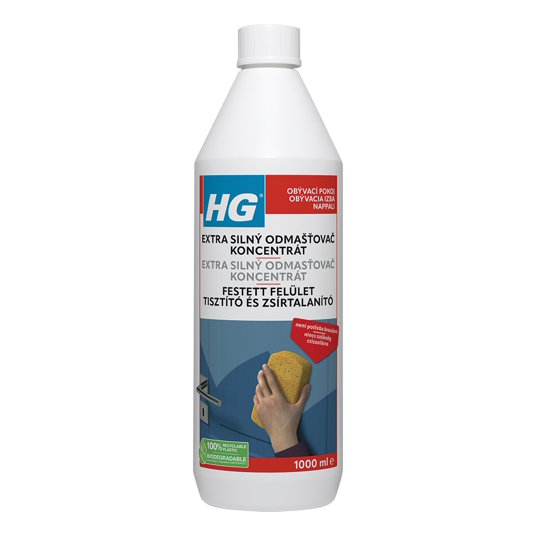 HG natírání bez broušení je vhodný i k odstraňování skvrn z nátěrů znečištěných nikotinem nebo povětrnostními vlivy. Tento čistič nátěrů lze používat jak uvnitř, tak i venku. HG super odmašťovač je k dispozici i jako balení pro přímé použití, které je perfektní pro ošetření menších ploch.
