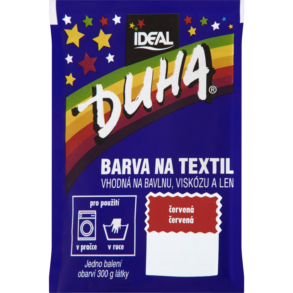 DUHA barvy na textil jsou určené ke změně barvy textilie. Jsou vhodné na barvení bavlny, viskózy a lnu. Lze je používat při barvení v ruce i v pračce.