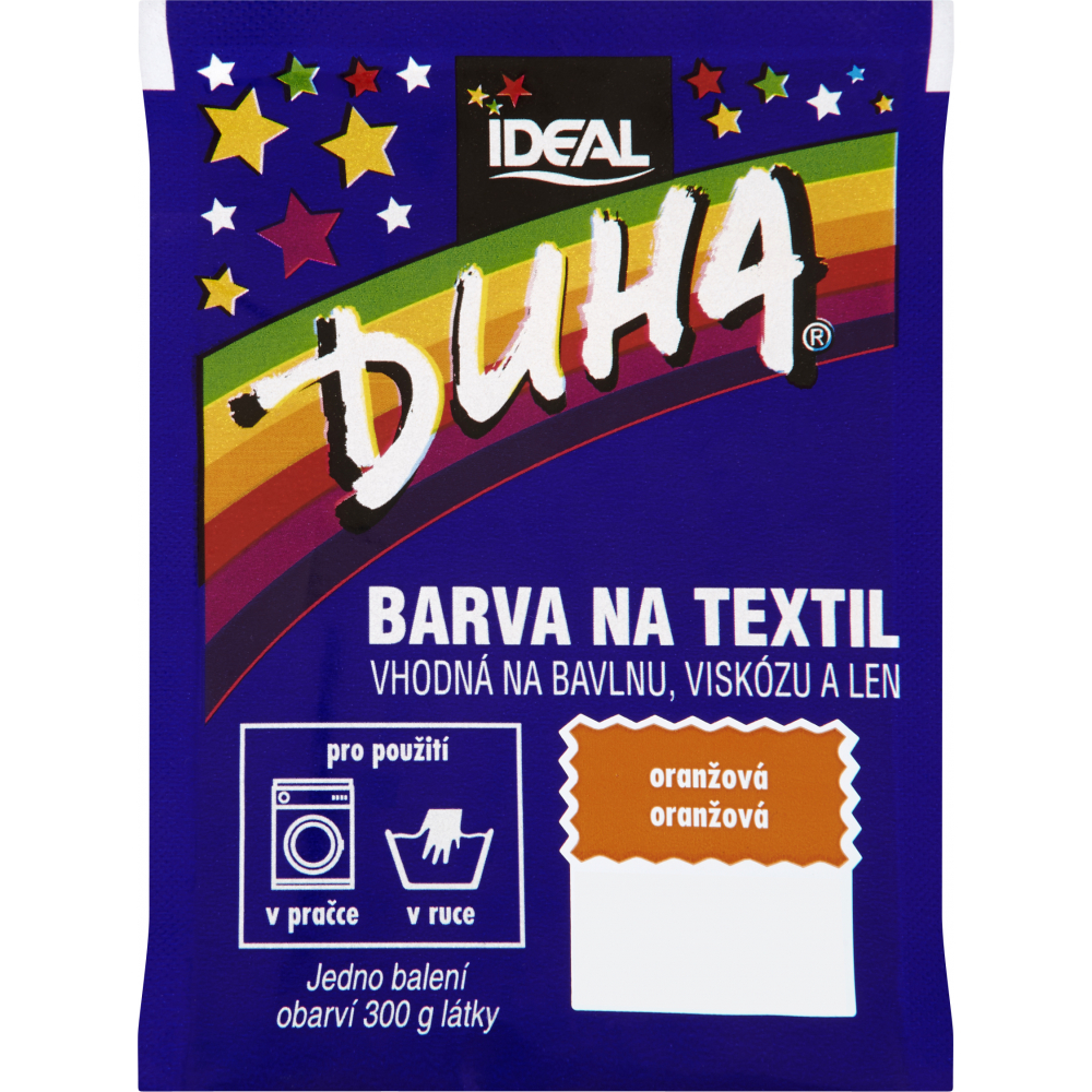 DUHA barvy na textil jsou určené ke změně barvy textilie. Jsou vhodné na barvení bavlny, viskózy a lnu. Lze je používat při barvení v ruce i v pračce.