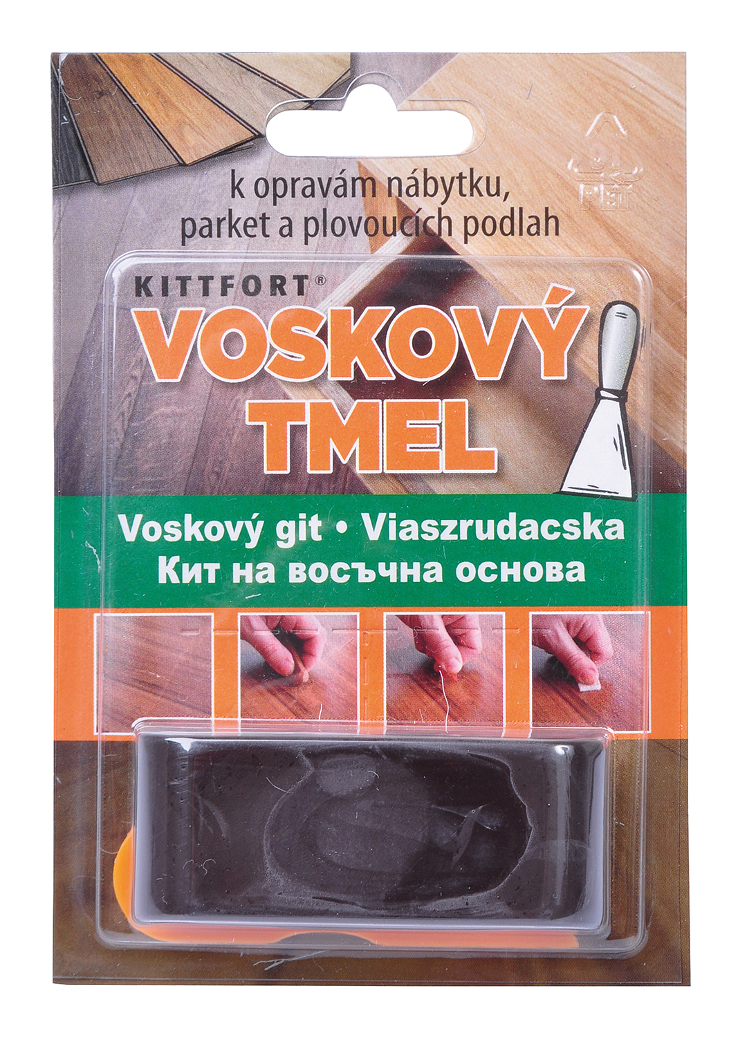 Voskový tmel slouží k vyspravení a retušování rýh a drobných škrábanců v plovoucích podlahách, parketách, mořeném dřevě a leštěném nábytku. Tmel je po aplikaci světlostálý. Následné ošetřování opravených míst běžným způsobem. Velmi rychlá a jednoduchá oprava – interiér i exteriér.