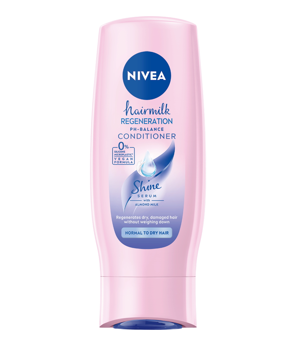 Mějte vlasy zdravé, krásné a dokonale jemné díky složení pečujícího kondicionéru, který byl vyvinutý speciálně pro normální až suché vlasy. Složení je navíc 100% veganské a bez mikroplastů, takže šampon je šetrný nejen k vašim vlasům, ale i k přírodě. Shine sérum, o které je složení také obohacené, se postará o snadné rozčesávání a pocit hebkých vlasů. Zamilujte si sametovou dokonalost: NIVEA Kondicionér Hairmilk Regeneration.