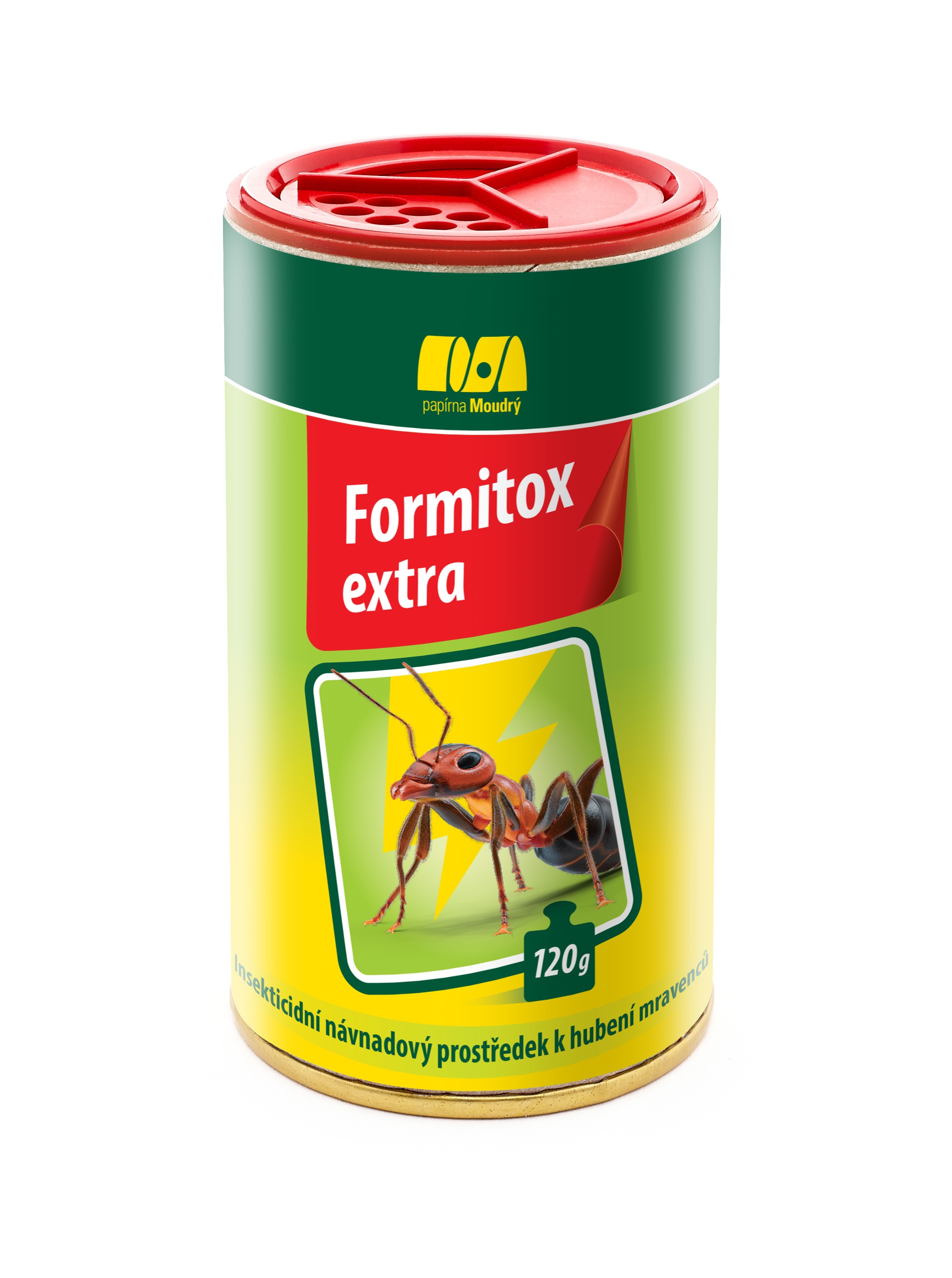 FORMITOX EXTRA je účinný přípravek proti mravencům všeho druhu, kteří často pronikají zvenku do vnitřních prostor budov. Po požití návnady hmyz hyne. Návod na použití a dávkování V případě 120 g balení v tubusu je na víku nádobky odklopný kryt, kterým se provádí aplikace přípravku. Po ukončení práce je třeba otvor znovu uzavřít. V případě 100 g balení v sáčku je třeba sáček otevřít a po ukončení práce opět uzavřít (zamezit možnému rozsypání prášku). Vodný roztok rozpustit 2 - 4 g krystalků ve 100 ml vody (vznikne 2 - 4 % roztok) a roztok nalít do mělkých misek z plastu nebo skla a umístit do míst předpokládaného výskytu hmyzu. V obou případech hmyz nástrahu pozře a po kratší době hyne. Krystalický prášek nasypat 1 - 2 g krystalků na podložku z papíru, plastu nebo skla a položit do míst předpokládaného výskytu hmyzu. Na místa ošetřená přípravkem FORMITOX EXTRA je nutné zabránit přístupu dětem, domácím a hospodářským zvířatům.