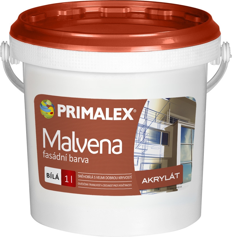 Primalex MALVENA je fasádní vysoce kvalitní čistě akrylátová barva s výbornou kryvostí, vysokou bělostí (min. 89% BaSO4) a odolností proti nepříznivým vnějším povětrnostním vlivům (vč. kyselých dešťů). Po zaschnutí je nátěr mrazuvzdorný. Společně s přirozenou odolností proti mytí a drhnutí i dokonalou prodyšností pro vodní páry je vhodná na všechny druhy fasád.