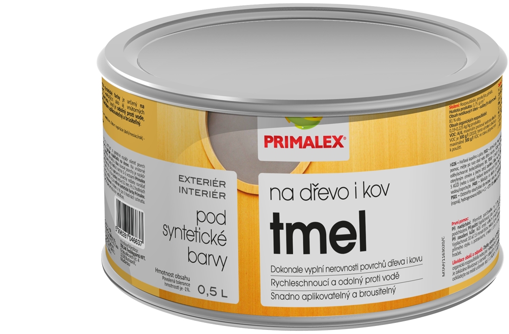 Primalex Tmel pod syntetické barvy je určen pro vyrovnávání nerovností venkovních i vnitřních dřevěných a kovových povrchů. Tmel je odolný proti vodě, rychleschnoucí, tvrdý, je velmi dobře aplikovatelný a brousitelný.