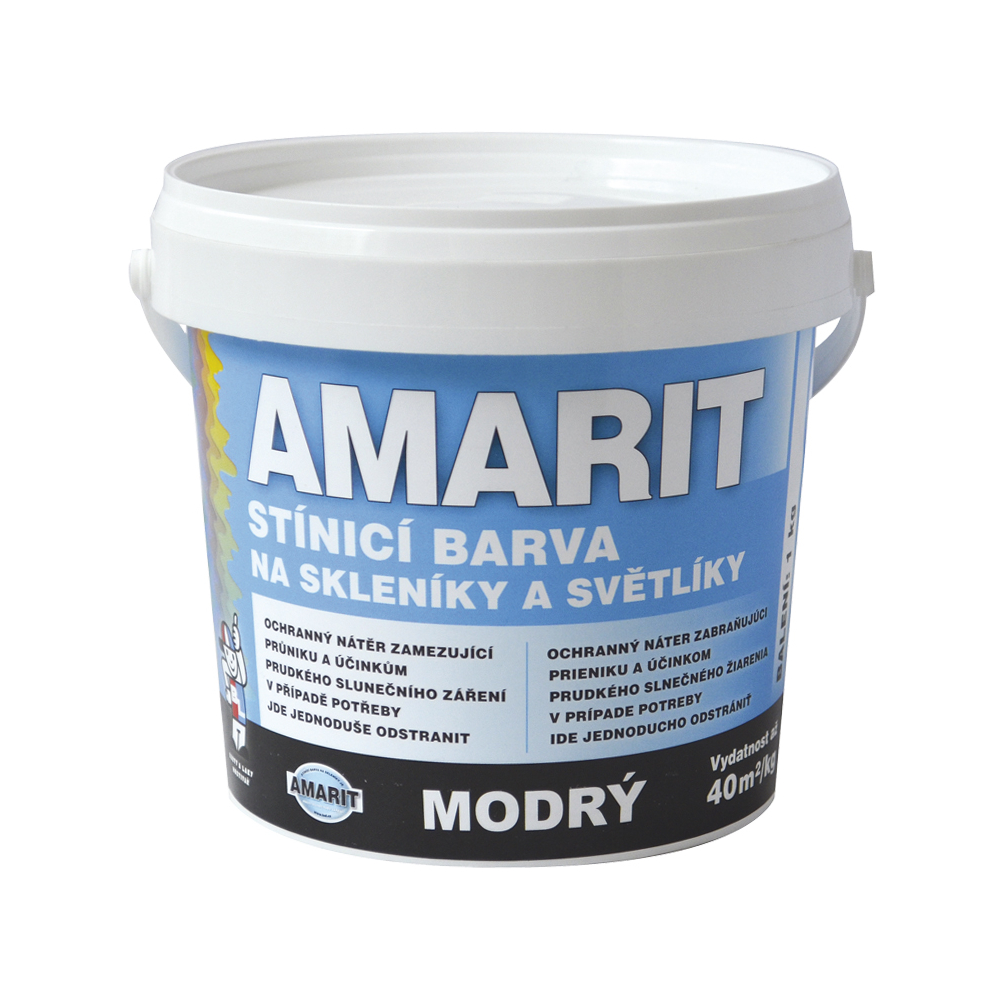 AMARIT modrý se používá pro stínící nátěry skleníků a pařenišť proti spalujícím účinkům slunečního záření. Ochranný nátěr zamezující průniku a účinkům prudkého slunečního záření.