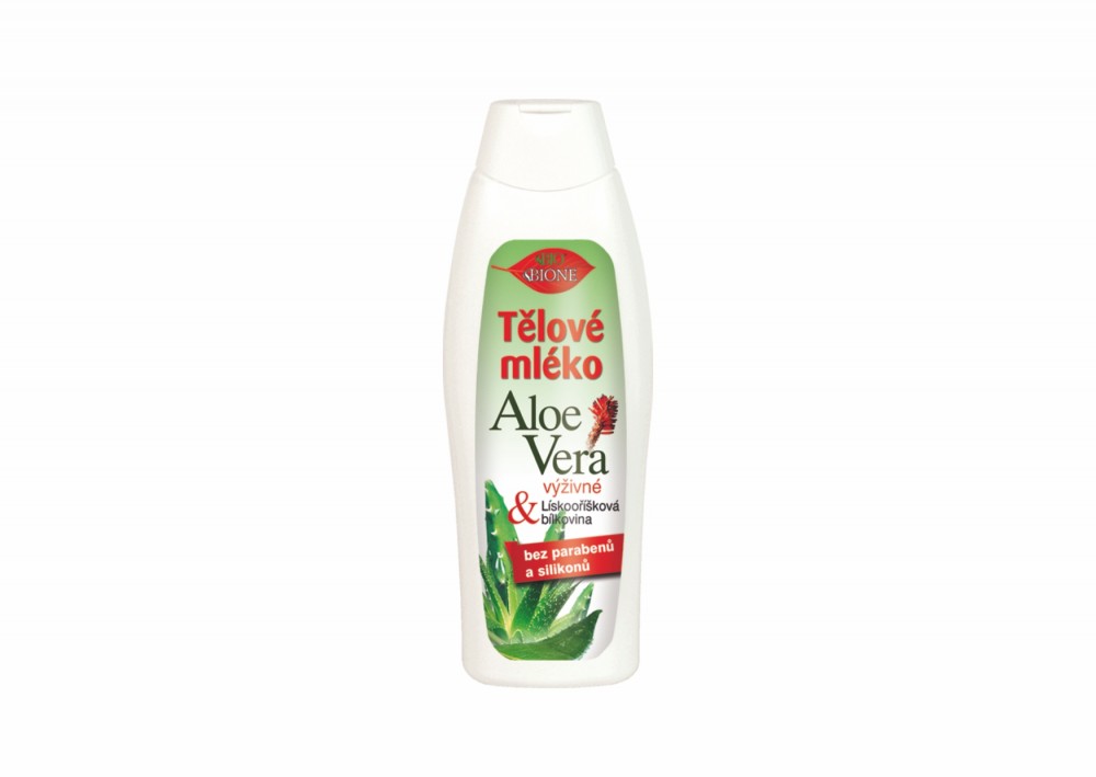 Středně tučné, výživné, ochranné a hydratační tělové mléko s univerzálním použitím, pro celou rodinu s výživou extraktu pravého Aloe Vera Barbadensis Miller. Tato moderní kosmetická přísada obsahuje více jak 200 aktivních látek. Zejména velké množství ochranných antioxidačních polyfenolů, chránících pokožku před stárnutím vlivem volných kyslíkových radikálů. Obsahuje kompletní řadu významných bio minerálů, vitamínů, karotenoidů, bioflavonoidů a mukopolysacharidů. Všechny tyto substance se podílejí na ochraně, regeneraci pokožky a na podpoře kožních biochemických procesů. Obsah tukové fáze: do 12 % hm.