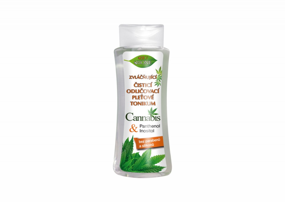 BIO – odličovací pleťové tonikum s inositolem je velmi lehké, snadno roztíratelné, s výbornou čisticí účinností na make-up, mastné i suché stíny. BIO kosmetika Cannabis obsahuje extrakt ze zelené listové části rostliny. Tím dodává kosmetice unikátnost a spotřebiteli řadu cenných látek z této výjimečné rostliny. Vedle nenasycených mastných kyselin, fytosterolů, fosfolipidů dodává i řadu antioxidantů, bio minerálů, vitamínů aj. Olej i extrakt Cannabis jsou používány v lidovém léčitelství pro svou údajnou protizánětlivou, antibakteriální, protialergickou a regenerační schopnost. Údajně mohou pozitivně působit na různé dermatitidy, u atopického ekzému, lupénky, akné a oparů. Odličovací tonikum má zvláčňující účinky, chrání pokožku před vysoušením a praskáním. Doplněno o vitamín B8 – inositol, vitamín „mládí, vitality a zdraví“ s výbornými antioxidačními a bio stimulačními účinky. Po použití bude pokožka vláčná, napnutá, s hedvábným leskem.