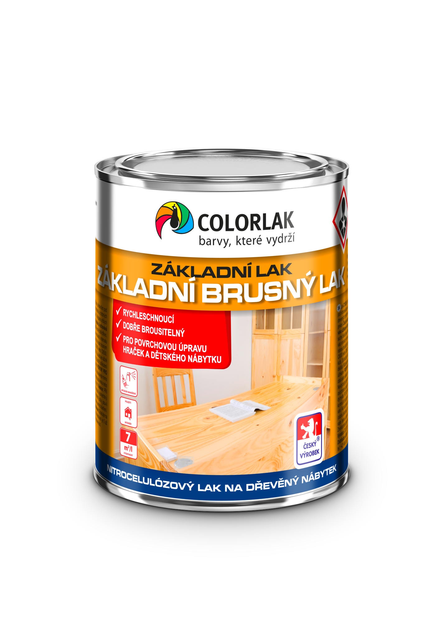 - Colorlak nitrocelulózový lak na dřevěný nábytek Základní Brusný Lak C1036 bezbarvý 0,75 l