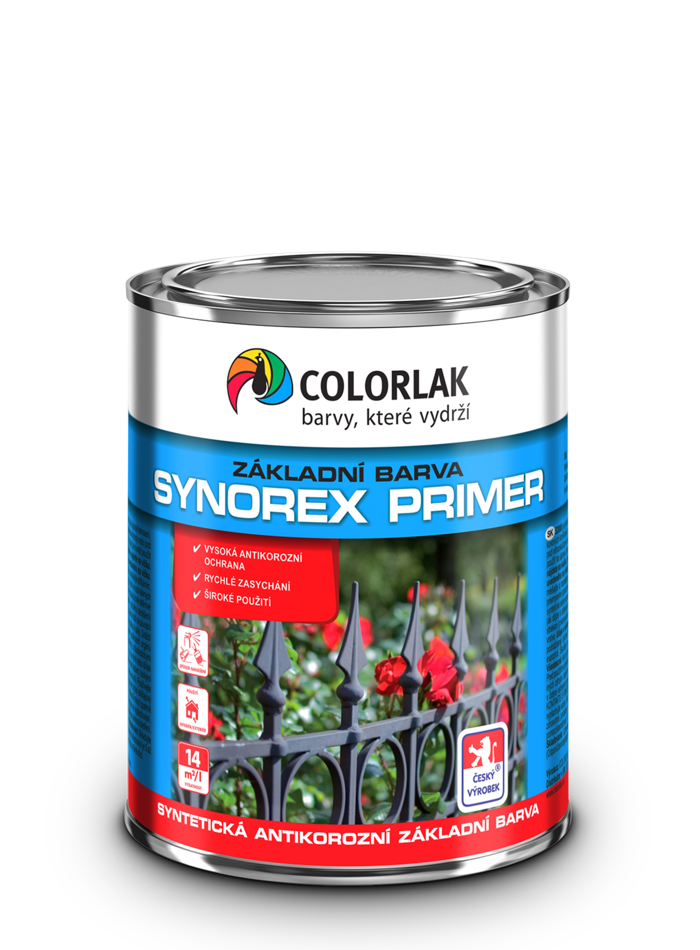 SYNOREX je základní barva s vysokou antikorozní ochranou na železné kovy a litiny pro venkovní i vnitřní použití.