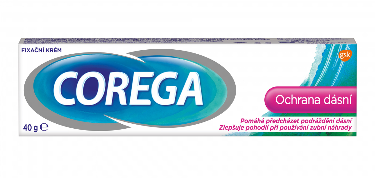 COREGA Ochrana dásní je součástí řady fixačních krémů na zubní náhrady bez zinku. Díky svému složení Vám nabízí celodenní (12-hodinové) pevné držení bez podráždění dásní, takže se můžete opět bezstrarostně usmívat.