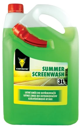 COYOTE Letní směs je určena k použití jako náplň pro všechny typy ostřikovačů skel motorových vozidel v letním období. Chrání zařízení ostřikovačů před korozí. Je bezfosfátová, biologicky odbouratelná.