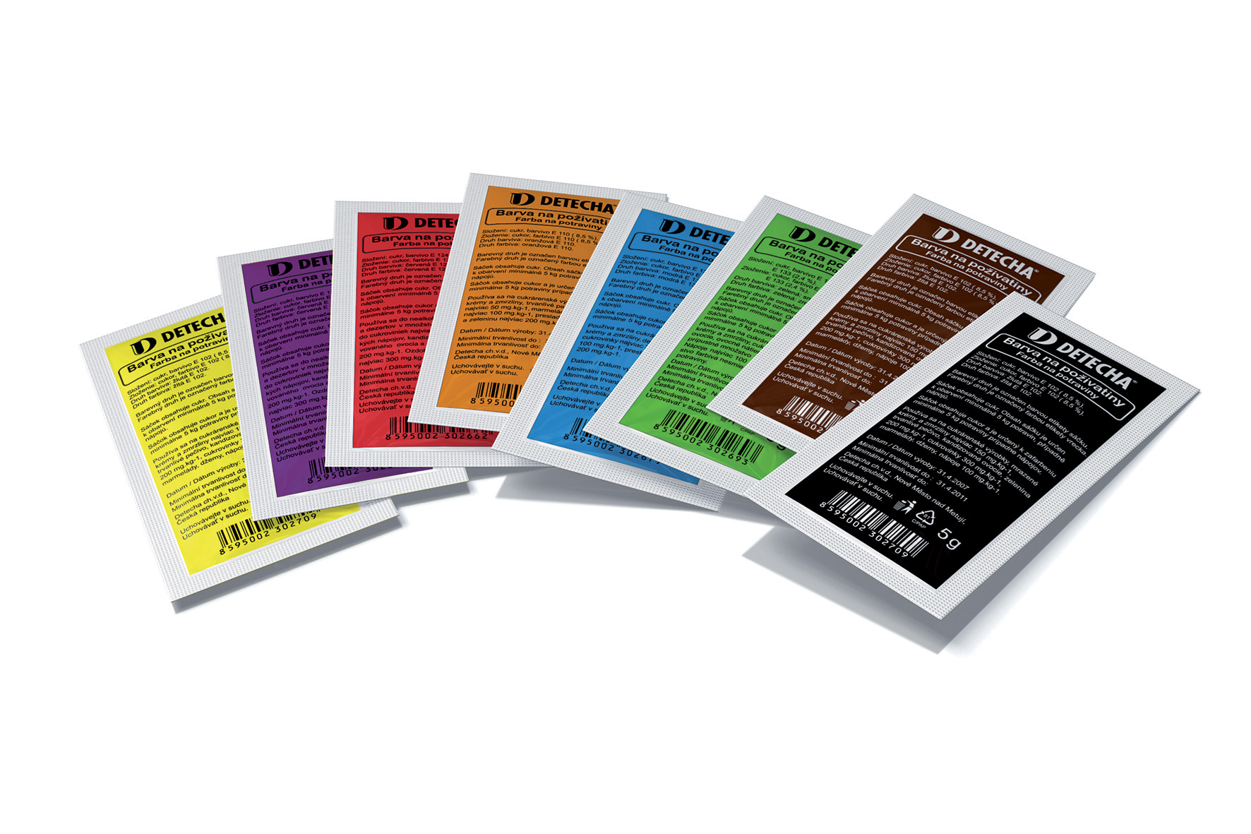 Barva na poživatiny. Barva obsahuje cukr. Jeden sáček je určen k obarvení minimálně 5kg hmoty.