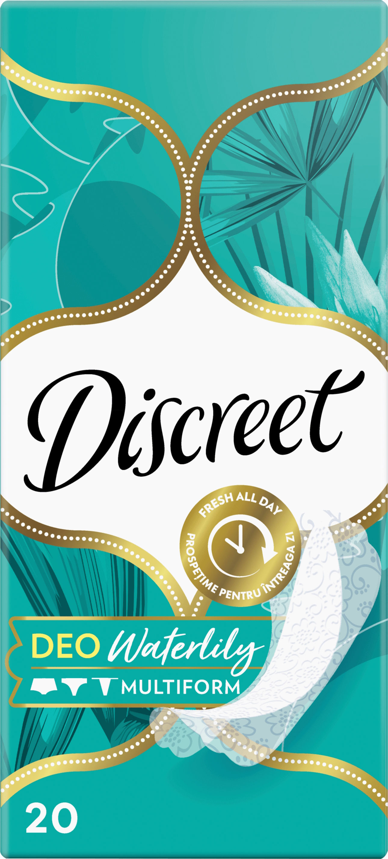 Nádherná vůně intimek Discreet Multiform Waterlily vám dodá příjemný pocit svěžesti a pomůže vám cítit se krásná bez ohledu na váš styl! Tyto intimky umožňují pokožce v intimních partiích přirozeně dýchat a zajišťují tak až 12 hodin svěžesti a pohodlí. Jsou tak tenké, že je ani neucítíte. Navíc se díky svému flexibilnímu provedení přizpůsobí každému střihu spodních kalhotek. Ať už vám den přinese cokoliv, přizpůsobí se vašemu pohybu.