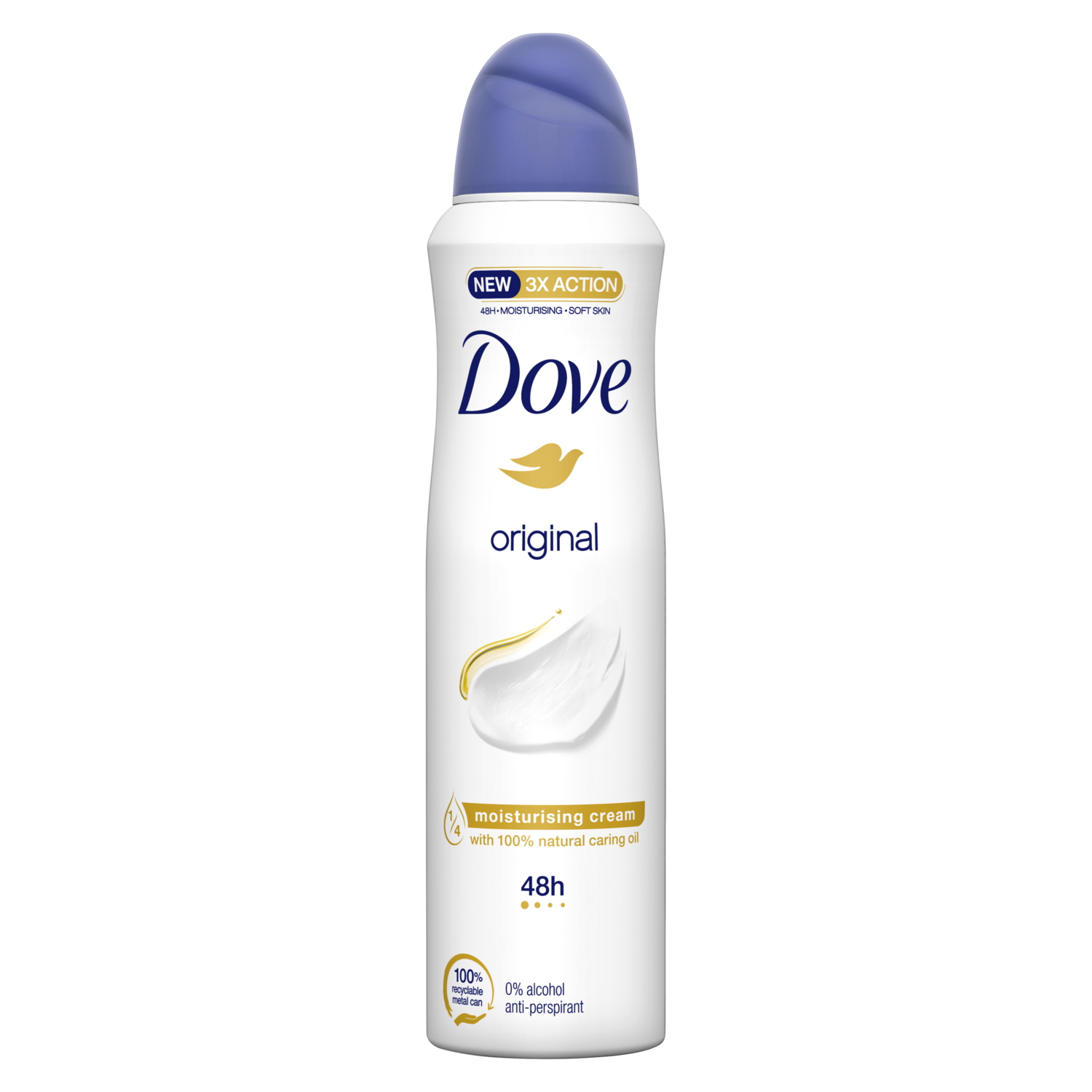 Antiperspirant ve spreji Dove Original s ¼ hydratačního krému a 100% přírodním pečujícím olejem pečuje o podpaží a poskytuje až 48 hodin ochrany před pocením.