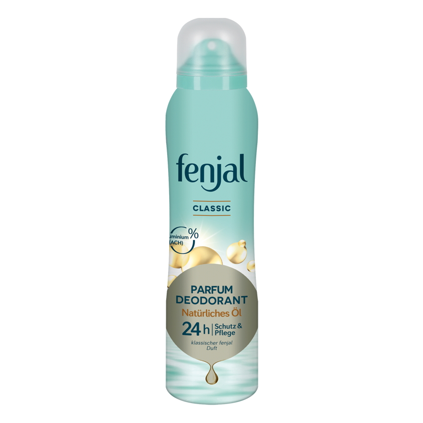 Nový parfémový deodorant fenjal ve spreji CLASSIC spolehlivě chrání před nepříjemným tělesným pachem po dobu 24 hodin s deodoračním účinkem oblíbené a nezaměnitelné vůně fenjal CLASSIC, která se kolem vás jemně ovine a je stálým tajemným společníkem. Aktivní formule obohacená o přírodní mandlový olej umožňuje pokožce volně dýchat a slibuje optimální kombinaci péče a účinné ochrany – vhodné i pro citlivou pokožku podpaží.