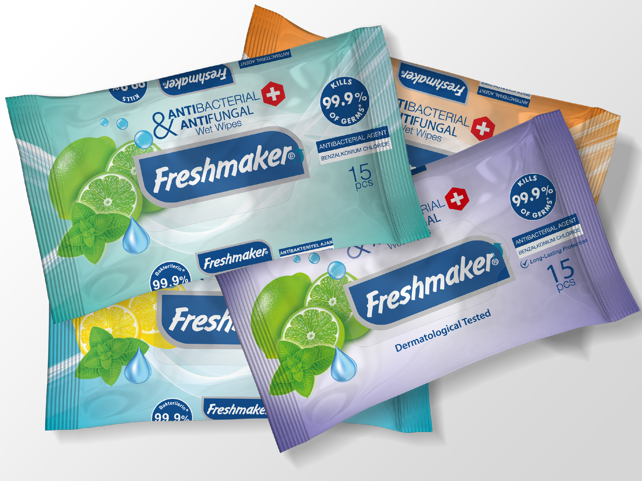 Freshmaker Antibakteriální vlhčené ubrousky. Aktivní složka Benzalkonium Chloride s dlouhotrvajícím účinkem. Ubrousky čistí a zjemňují pokožku, poskytují doplňkovou ochranu před bakteriemi. Bez obsahu alkoholu. Antibakteriální vlhčené ubrousky Freshmaker obsahují netkané měkké vlákno impregnované roztokem, který je navržený pro jemné čištění, zjemnění a osvěžení pokožky. Vlhčené ubrousky jsou vhodné pro každodenní použití v domácnosti a jsou ideální při cestování.