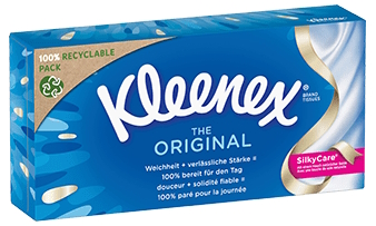 Vaše pokožka si zaslouží obzvlášť jemnou péči. Kleenex® Original je náš všestranný, víceúčelový kapesník s nádechem přírodního hedvábí. Měkký a zároveň odolný papírový kapesník je všestranný ve všech situacích.