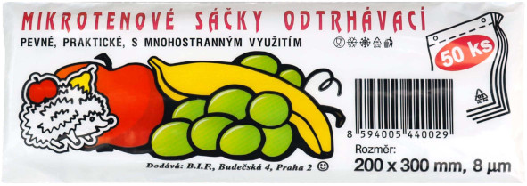 Mikrotenové sáčky o rozměru 200x300mm, 50ks. Tloušťka: 8 mikronů. Vyrobeno v České republice.