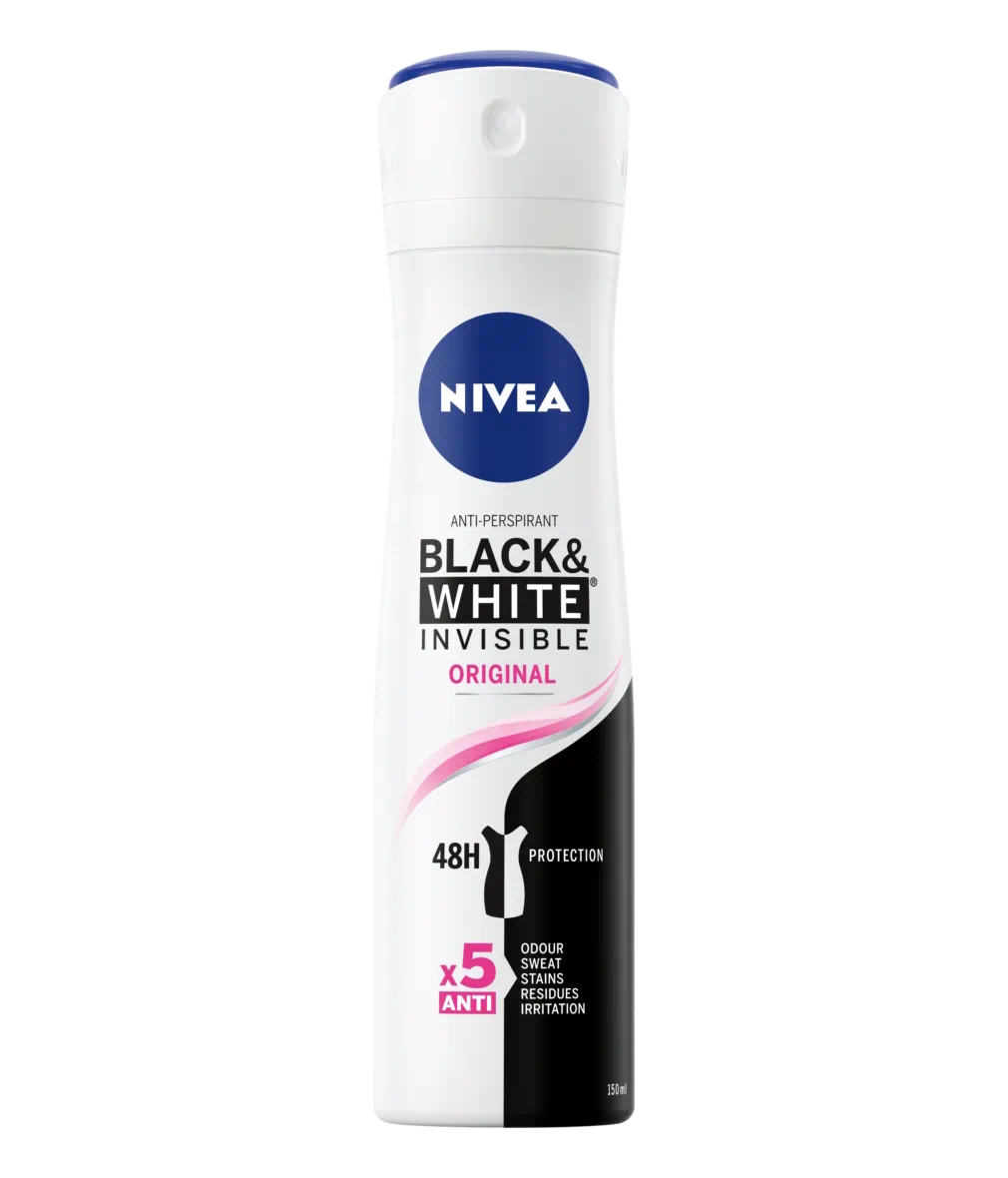 - Nivea antiperspirant Black White Invisible Original 150 ml
