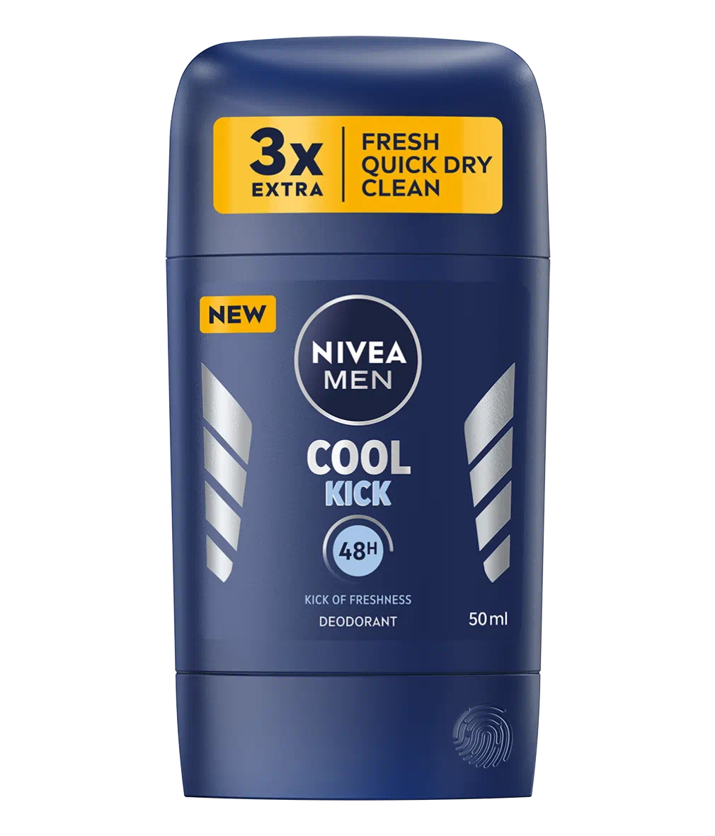 Zažijte okamžitou vlnu ledového osvěžení a zbavte se efektivně potu i jeho zápachu. A to až na 48 hodin! Vychutnejte si příjemně chladivý efekt doprovázený povzbuzující mužnou vůní při každém použití. Inovované složení s pečujícím avokádovým olejem bez alkoholu je šetrné k pokožce podpaží a zároveň účinně reguluje tělesný zápach. Obal je navíc 100% recyklovatelný a při jeho výrobě bylo použito o 30 % méně plastu. Vyzkoušejte spolehlivou ochranu v moderním obalu: NIVEA MEN Tuhý deodorant pro muže Cool Kick.