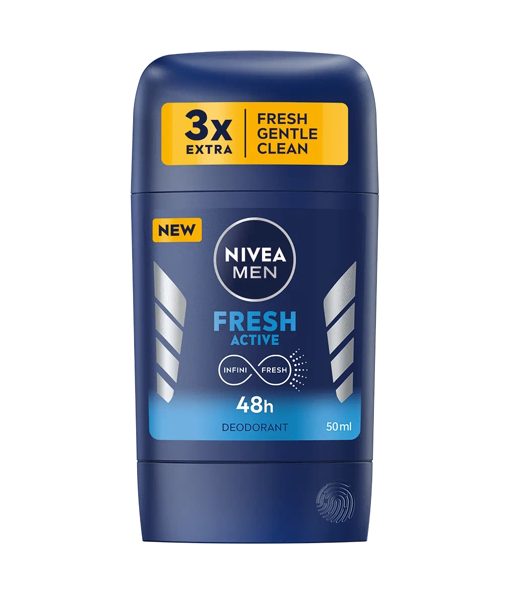 Dejte sbohem nepříjemnému zápachu potu a to hned! Deodorant se svěží mužnou vůní a s vylepšeným složením s pečujícím avokádovým olejem vás ochrání před pachem potu až po dobu 48 hodin. Neobsahuje hliníkové (aluminiové) soli ani alkohol a nezanechává bílé stopy na oblečení. Obal je navíc 100% recyklovatelný a je použito o 30 % méně plastu. Vsaďte na dlouhotrvající pocit svěžesti v moderním designu a nenechte se omezovat v pohybu. Každý den vás bude chránit: NIVEA MEN Tuhý deodorant pro muže Fresh Active.