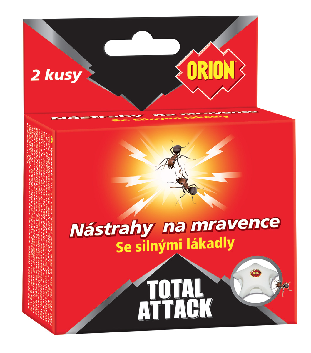 ORION TOTAL ATTACK nástrahy na mravence se silnými lákadly přitahují mravence do pasti, kde se nachází insekticidní látka. Po požití této látky se vracejí do svých úkrytu, kde hynou. Gelová formule je pro mravence velmi lákavá a obsahuje složky, které působí smrtelně proti mravencům a jejich hnízdům.