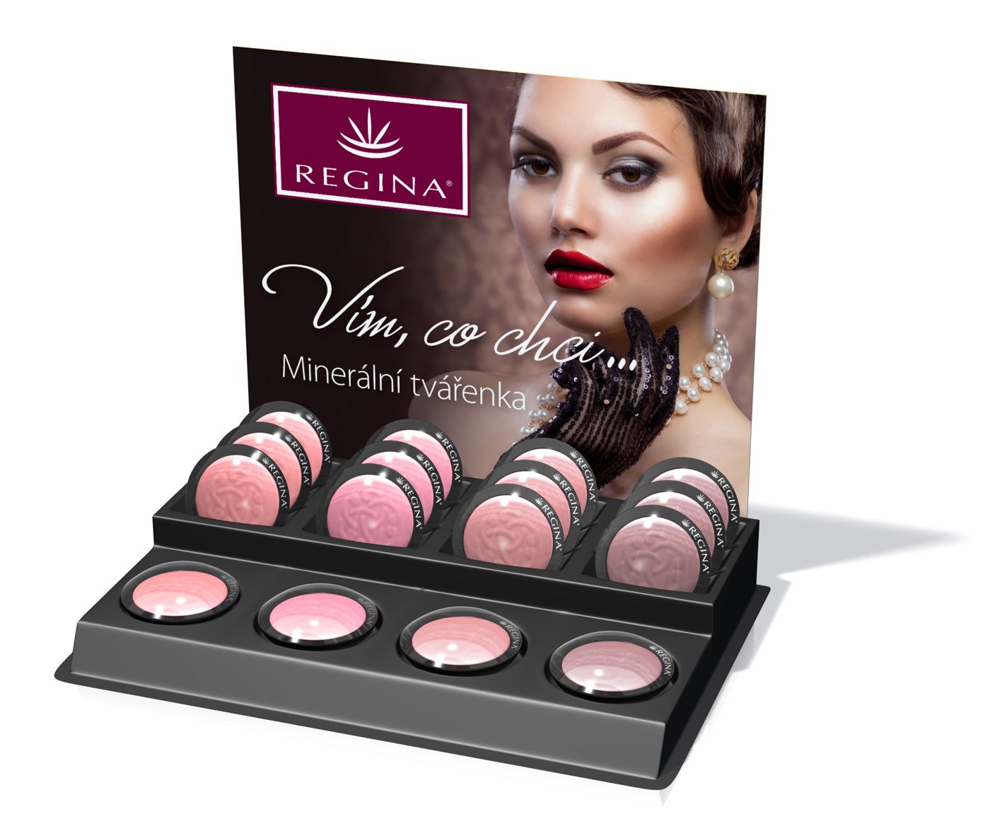 Nová tvářenka Regina s obsahem minerálních pigmentů. Zjemní a zvýrazní kontury obličeje a dodá pleti přirozenou svěžest. Minerální tvářenka je vyrobena ze 100% čistých minerálií. Atraktivní design.