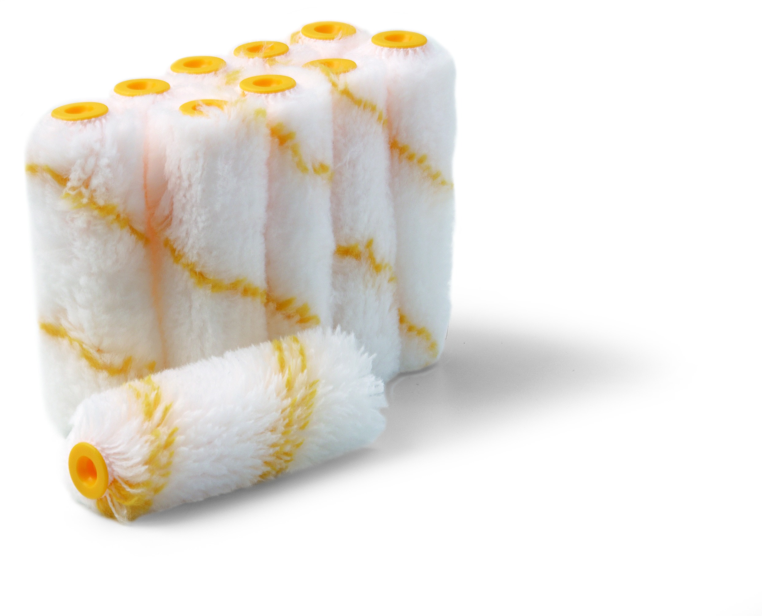 Goldline HK váleček MINI. Profi kvalita z jemných polyamidových vláken s velmi dobrým výkonem příjmu a výdeje barvy na m². Potah zpočátku lehce chlupatí, je velmi lehce pratelný, při nátěru nestříká a má velmi dlouhou životnost. Je velmi odolný opotřebení, odolný vůči ředidlům a zanechává na povrchu velmi jemnozrnnou strukturu.