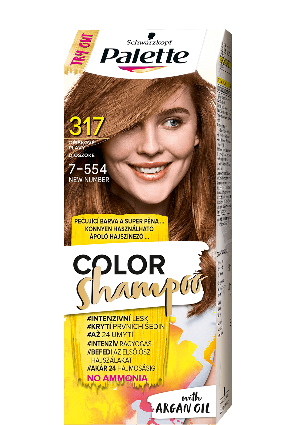 - Schwarzkopf barva na vlasy Palette Color Shampoo 7-554 oříškově plavý 50 ml + 10 ml + 10 ml
