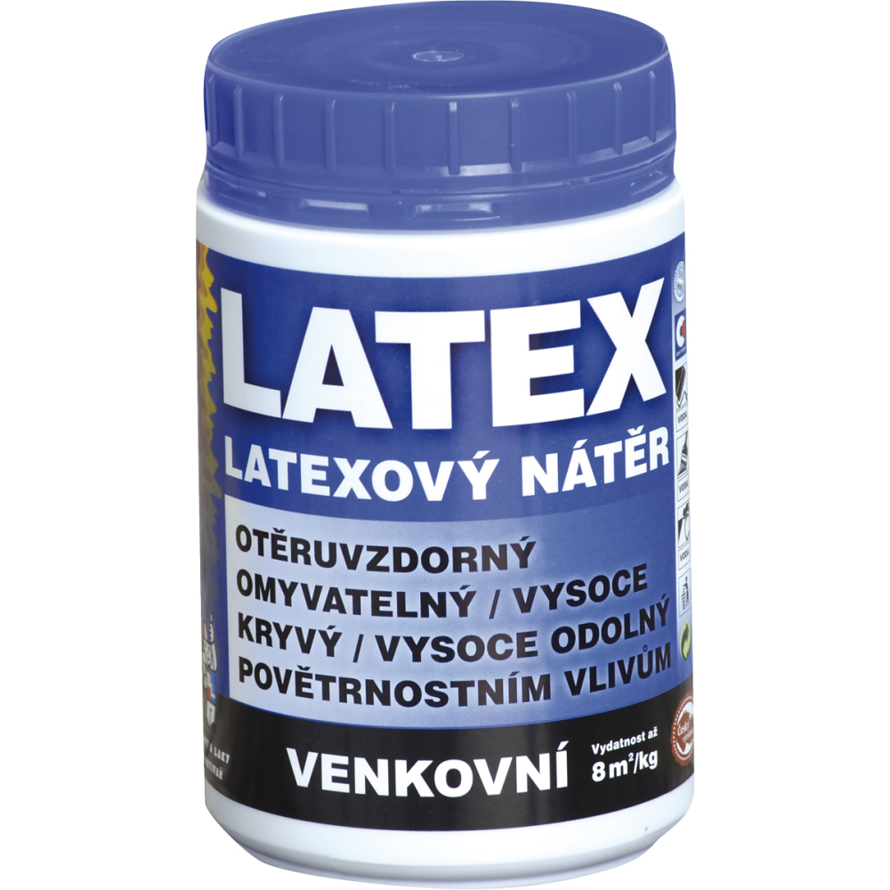 LATEX VENKOVNÍ je určen pro vnitřní a venkovní nátěry stavebních materiálů jako jsou zdivo, dřevo, dřevotřískové a dřevovláknité desky a papír. Je omyvatelný, s vysokou bělostí a dobře kryje. Není vhodný pro objekty s trvale vlhkým prostředím. Používá se pro venkovní nátěry stavebních materiálů, jako jsou zdivo, dřevo, dřevotřískové a dřevovláknité desky a papír. Teplota prostředí a podkladu při nátěrech +10 °C až +25 °C. Barva není vhodná pro objekty s trvale vlhkým prostředím. Barva vykazuje odolnost proti oděru za mokra - měřeno dle ČSN EN ISO 11998 – třída 3. (klasifikace dle EN 13300).