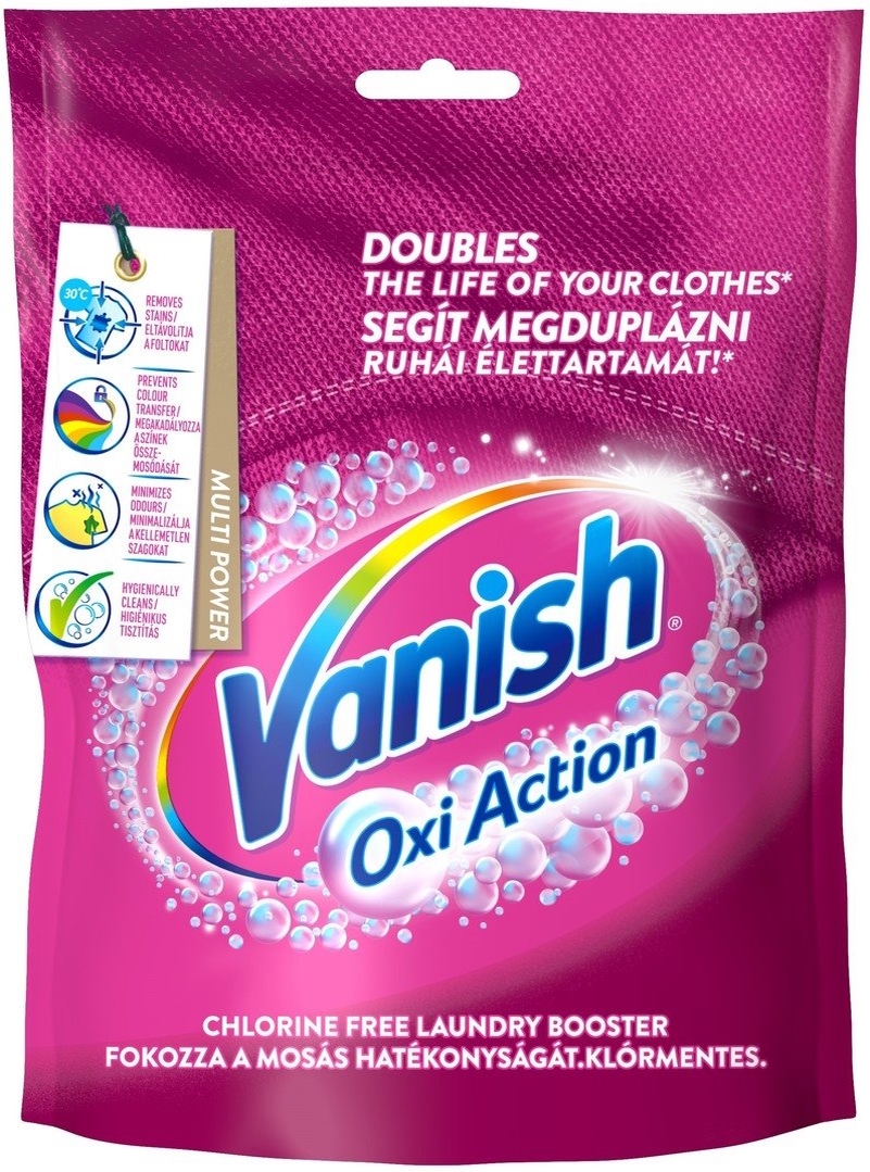 Vanish Oxi Action odstraňovač skvrn odstraní skvrny již po prvním praní. Je účinný na velké spektrum skvrny. Pro dosažení maximální rychlosti a účinku proveďte předčištění nebo textilii namočte