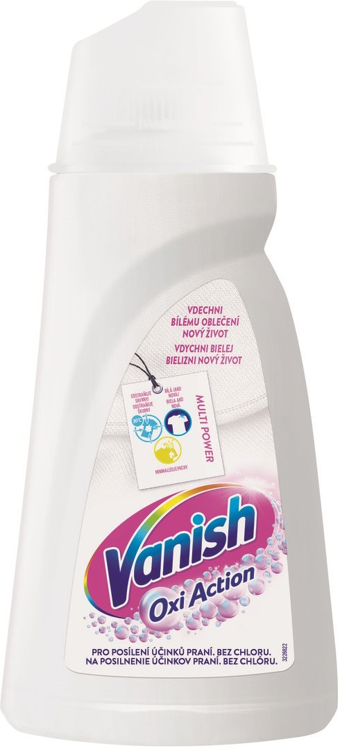 Vanish Oxi Action tekutý odstraňovač skvrn na bílé prádlo představuje účinný způsob udržování bělosti bílých látek bez poskvrny a zároveň odstraní skvrny již po prvním praní.