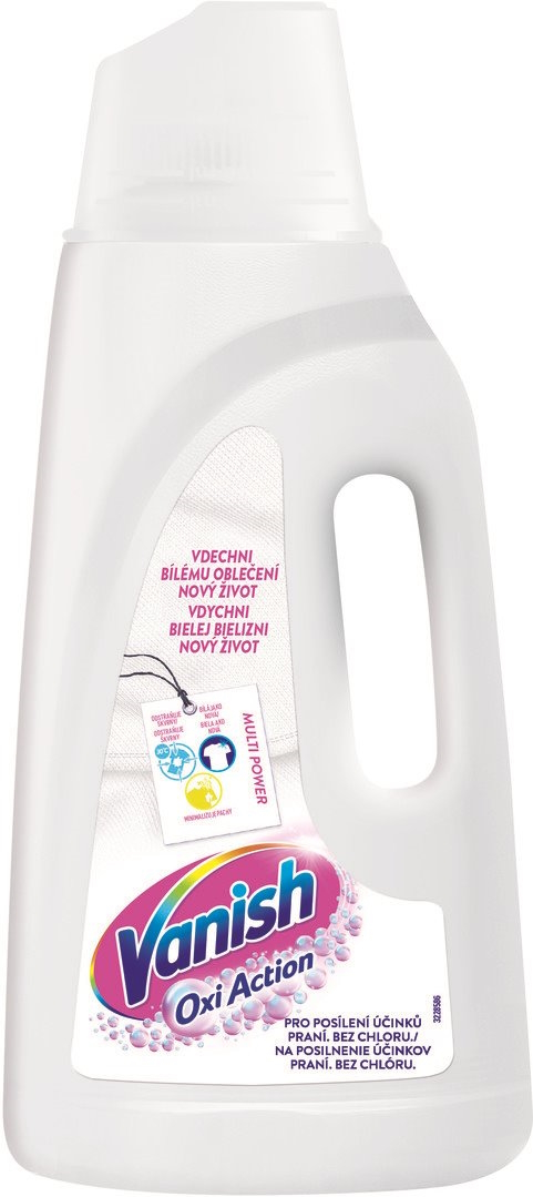 Vanish Oxi Action tekutý odstraňovač skvrn na bílé prádlo představuje účinný způsob udržování bělosti bílých látek bez poskvrny a zároveň odstraní skvrny již po prvním praní.