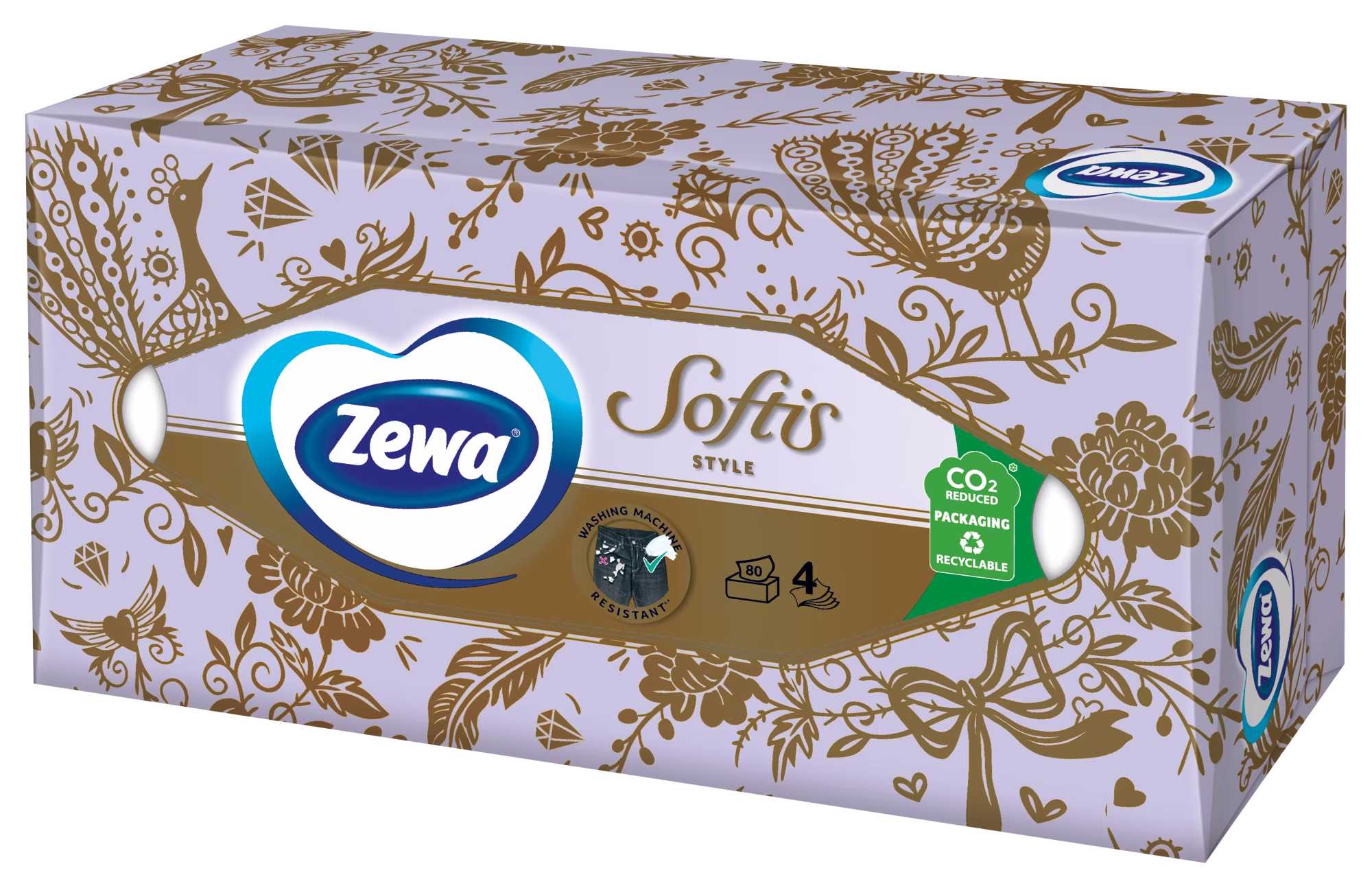 - Zewa papírové kapesníky 4 vrstvé Softis Style 80 ks (mix barev)